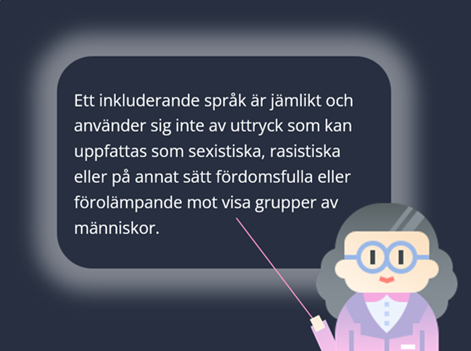 • Inkluderande kommunikation: Vilken typ av jargong finns på arbetsplatsen? Är språket inkluderande, både i talad och skriftlig form?